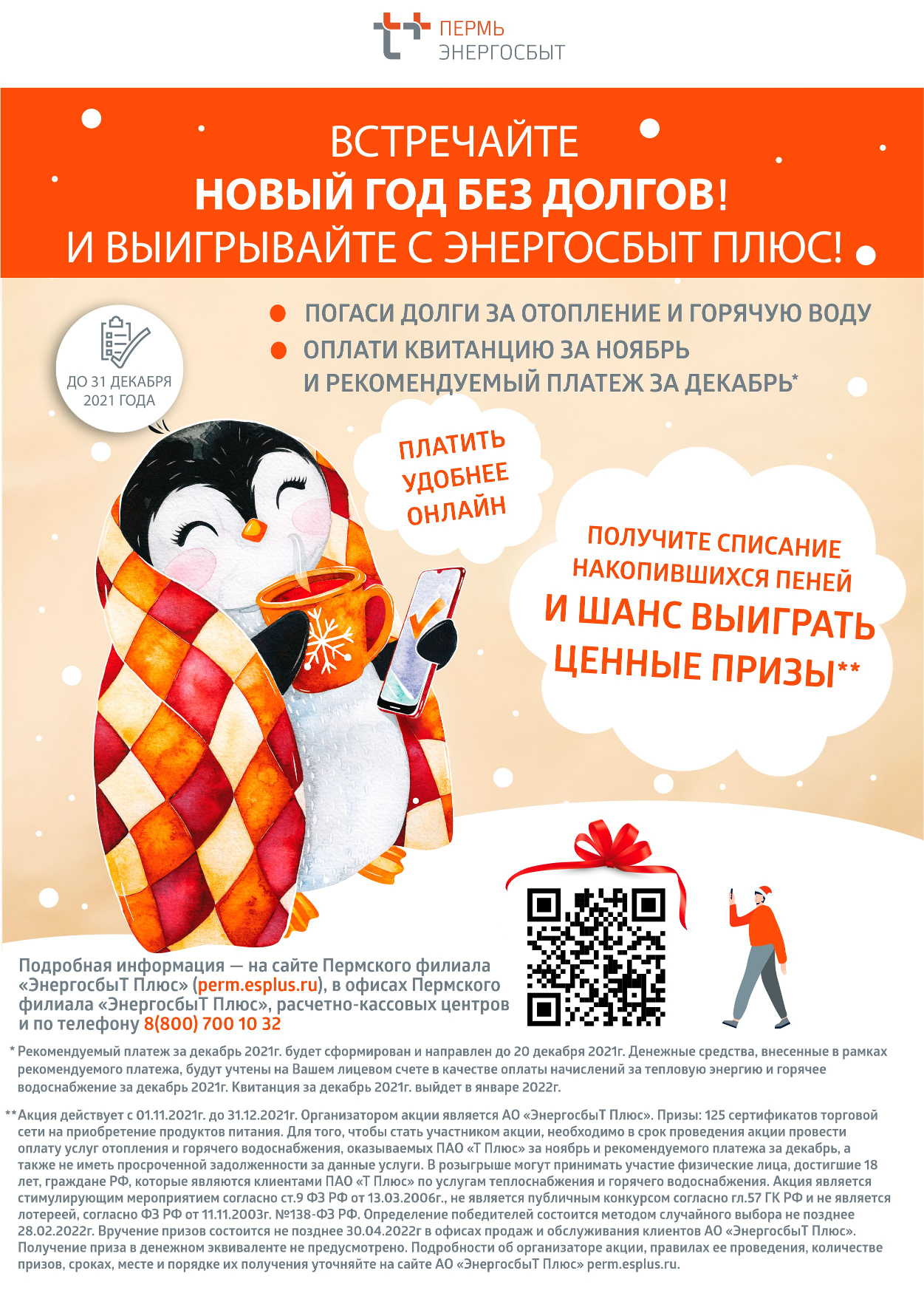 Встречайте Новый год без долгов! Выигрывайте с АО «ЭнергосбыТ Плюс»!